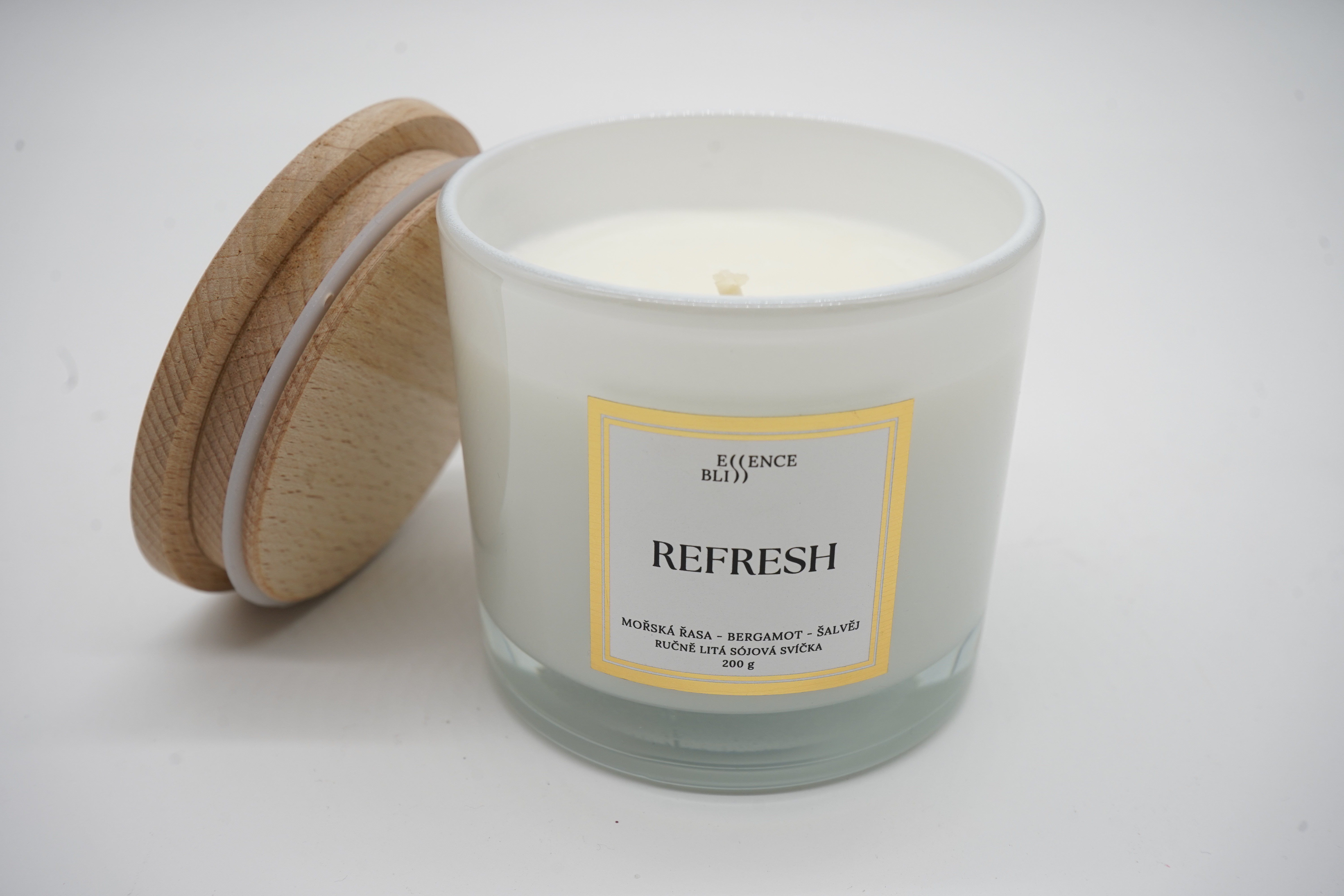Objevte vůni svěžesti s přírodní svíčkou Essence Bliss REFRESH.