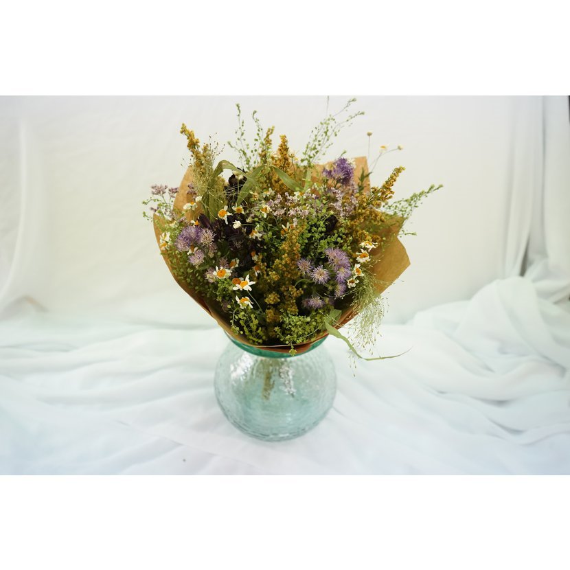 Kytice hraje teplými, optimistickými tóny žluté, které jsou doplněny jemnými, světlejšími akcenty a bohatou zelení. Její plný a harmonický vzhled vytváří dojem pohody a vitality, jako stvořený pro ty nejkrásnější chvíle.